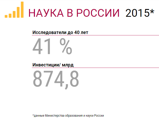 В прошлом веке российский народ поднимал целину и прокладывал БАМ, а сейчас строит хай-тек экономику. На выполнение очередной сверхзадачи брошены все силы: в вузах повсеместно открываются инновационные специальности, в бизнес-структурах создаются свои кадровые программы, правительство проводит реформы, направленные на привлечение людей в сферу высоких технологий. Помогают ли все эти меры добиться желаемых результатов? Безусловно. В последние годы в стране наметилось заметное омоложение исследовательского корпуса. По данным Минобрнауки, за 2015 год возраст исследователей до 40 лет вырос в России с 36 до 41%. При этом их количество увеличилось более чем на 4,5 тыс. человек – такие данные приводит Росстат. Прежде всего это стало возможным благодаря увеличению финансирования научных отраслей. В 2010 году на науку было выделено 523,4 млрд рублей, а пять лет спустя, в 2015-м, уже 874,8 млрд.